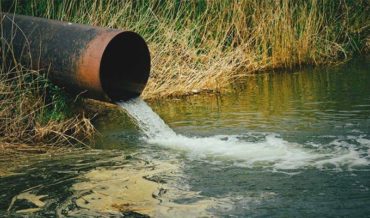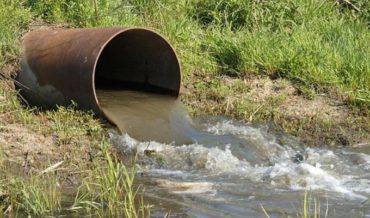 A travers une conduite enterrée vers une fosse septique ou une station.